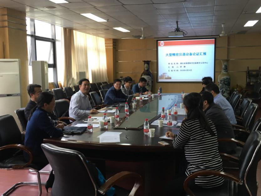 4月24日下午,实验室与设备管理处组织召开城市与环境科学学院2018年中央财政改善基本办学条件专项经费购置大型仪器设备可行性论证会,会议在十号楼607会议室举行,邀请了中国科学院武汉测量与地球物理研究所李仁东研究员、华中农业大学资环学院李朝霞教授、华中师范大学物理科学与技术学院黄光明教授、武汉大学资环学院陈奕云副教授、华中师范大学财务处谢祎龙副处长、华中师范大学实验室与设备管理处梅伏生副处长、华中师范大学城市与环境科学学院张海林副教授作为论证专家,城市与环境科学学院罗静院长、黄建武副院长、易军博士、伍铁牛博士、朱爱琴博士参加了此次会议,会议由黄建武主持。