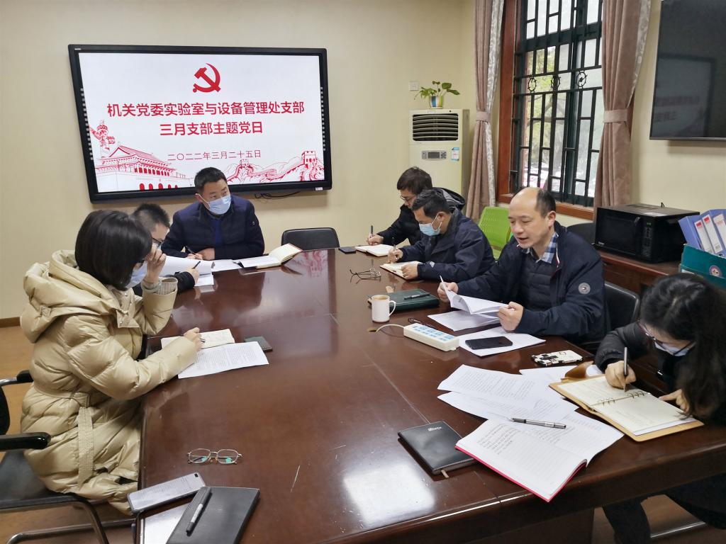 3月25日下午3:00,实验室与设备管理处党支部在行政楼附楼208会议室召开2022年3月份支部主题党日学习暨巡查整改推进会议,会议由支部书记贺占魁主持,支部全体党员参会。