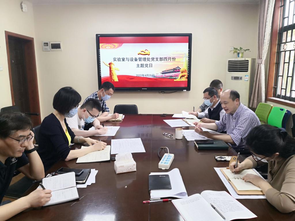 4月25日下午3:00,实验室与设备管理处党支部在行政楼附楼208会议室召开2022年4月份支部主题党日学习活动,会议由支部书记贺占魁主持,支部全体党员参会。
