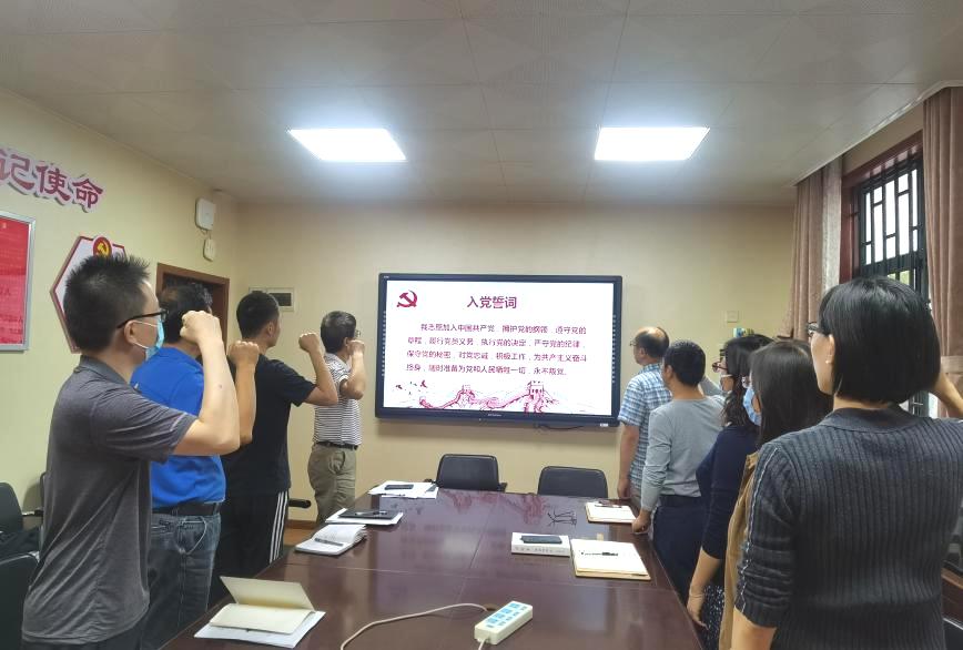 活动第四阶段,全体党员在支部书记贺占魁的带领下重温入党誓词。