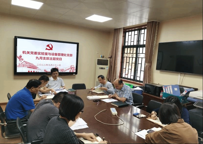9月21日下午3:30,实验室与设备管理处党支部在行政楼附楼208会议室召开2022年9月份支部主题党日学习活动,会议由支部书记贺占魁主持。