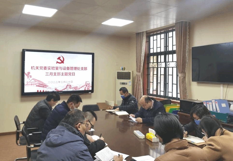 3月20日下午3:00,实验室与设备管理处党支部在行政楼附楼208会议室召开2023年3月份支部主题党日学习活动,会议由支部书记贺占魁主持,支部全体党员参会。