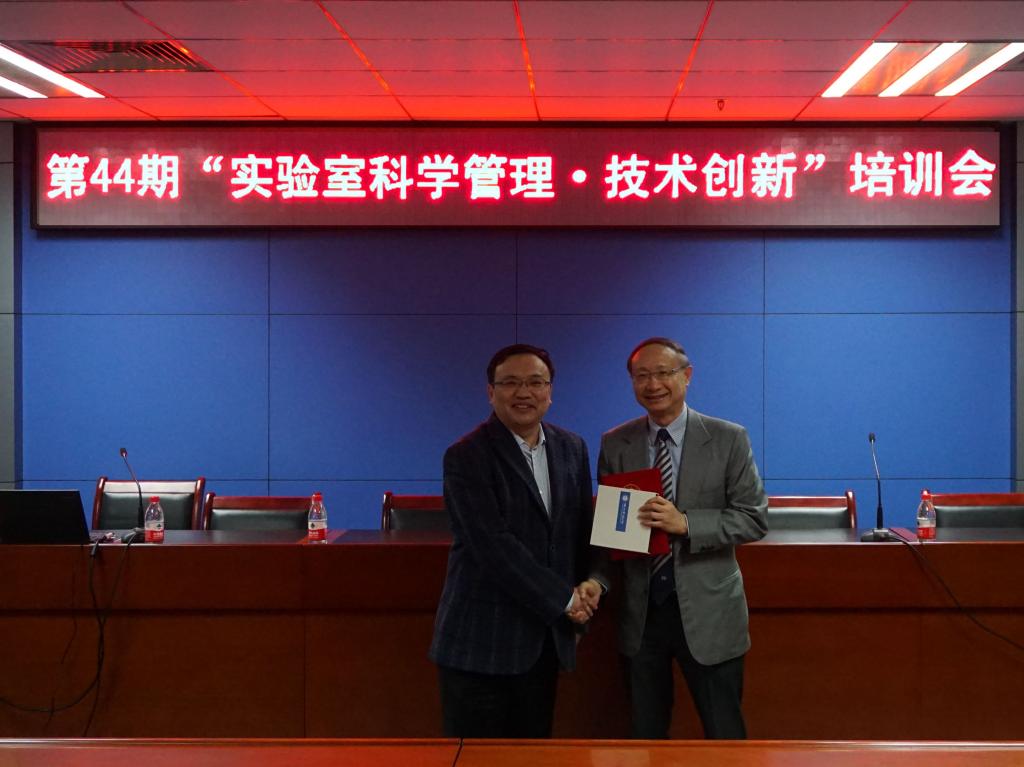 2017年10月18日,关继祖特聘教授聘任仪式暨第44期实验室科学管理与技术创新培训会在我校图书馆三楼报告厅顺利进行。副校长夏立新出席仪式,实验室与设备管理处全体成员、各教学科研单位分管实验室的院领导、实验教学中心主任、副主任、实验技术人员共70余人参加了培训会。会议由贺占魁处长主持。