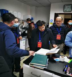 (彭双阶副校长在化学学院实验室进行检查)